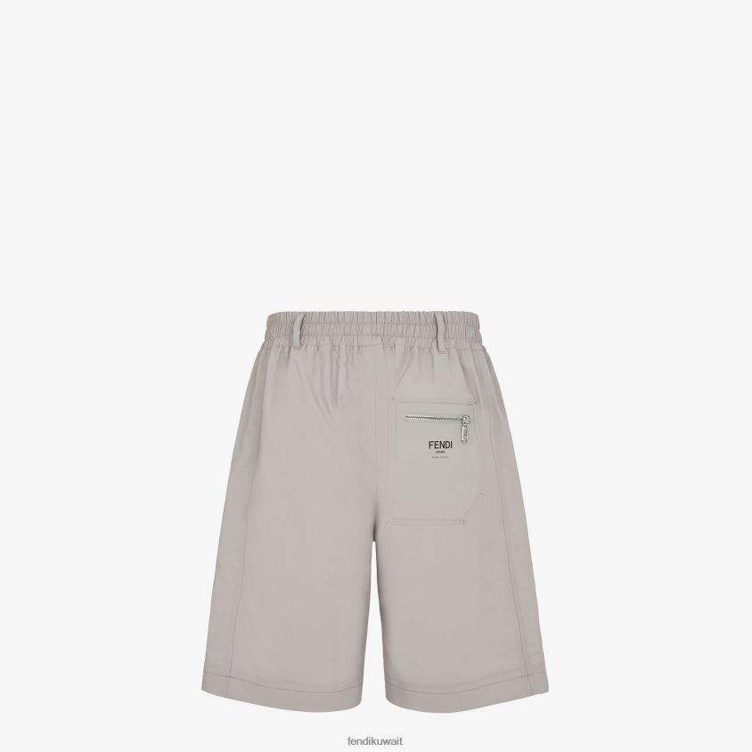 شورت مستقيم بخصر مطاطي. جيوب جانبية وجيب للعملات المعدنية بسحاب. حلقات الحزام عند الخصر. إغلاق بسحاب مخفي. مصنوعة من الكتان الرمادي. جيب رقعة بسحاب في الخلف مع طباعة شعار فندي متباينة وشريط فندي أولوك المعدني.