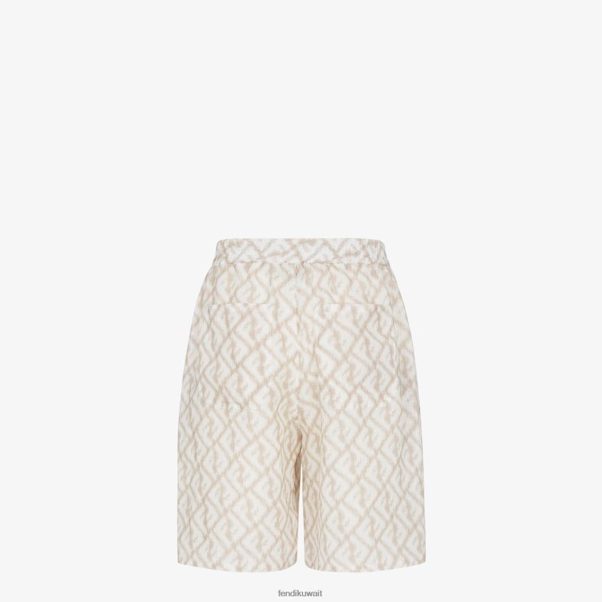 برمودا بحزام خصر مطاطي وطيات في الأمام. جيوب جانبية وجيوب رقعة في الخلف. إغلاق مخفي مع زر وسحاب. مصنوع من الكتان مع نقش ff مائل بتأثير ikat ومطبوع بالكامل باللونين الأبيض والبيج.