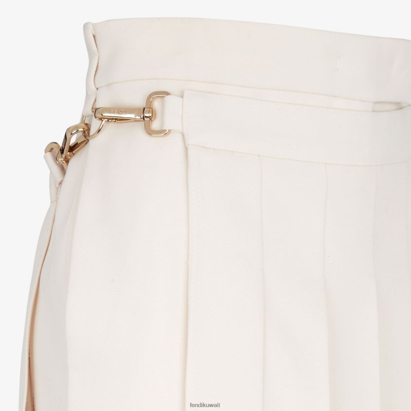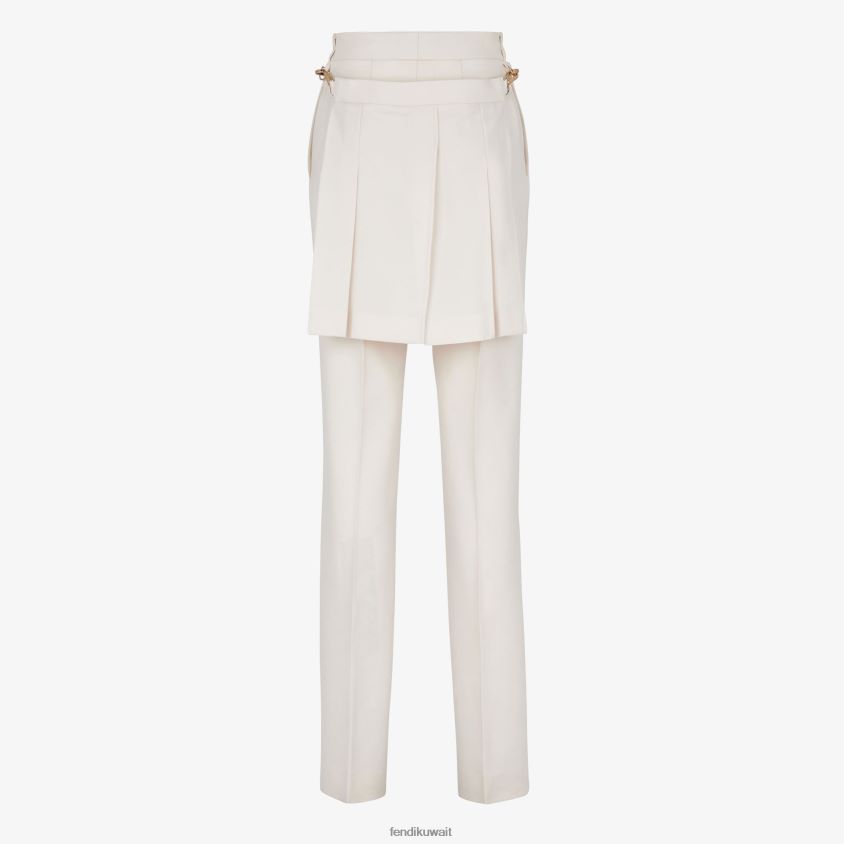 Fendi أبيض نحيف بنطال من الصوف من نوع الحبوب دي بودر RTJZ948 ثياب