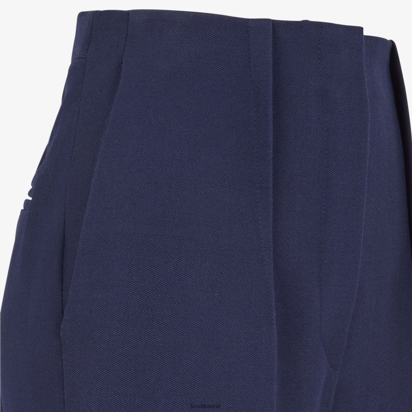 بنطال سيجارة مع تجاعيد مخيطة من الأمام والخلف. جيوب على الجوانب وجيب بسحاب في الخلف. إغلاق بسحاب مخفي. مصنوع من صوف الحبوب الأزرق.