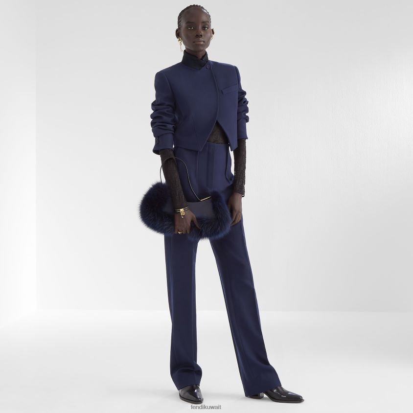 Fendi أزرق نحيف بنطال من الصوف من نوع الحبوب دي بودر RTJZ1204 ثياب
