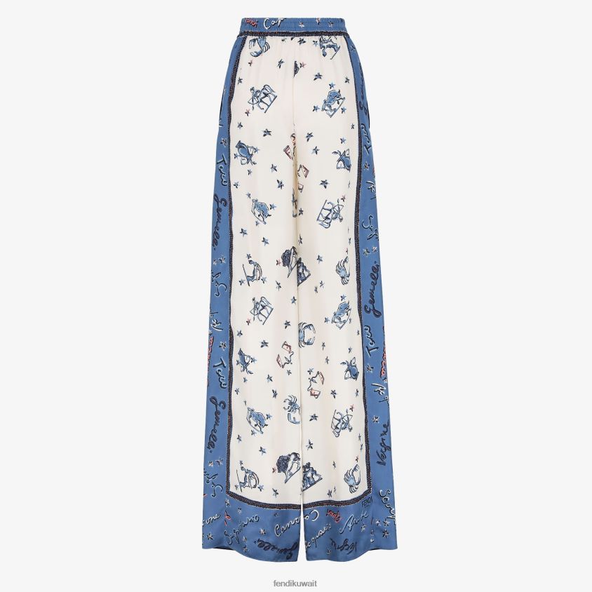 سراويل بيجامة متدفقة. حزام خصر مطاطي وجيوب جانبية. مصنوعة من نسيج قطني طويل من الحرير باللونين الأزرق والأبيض. تم تخصيصه بطبعة علم التنجيم من فندي على كامل التصميم.