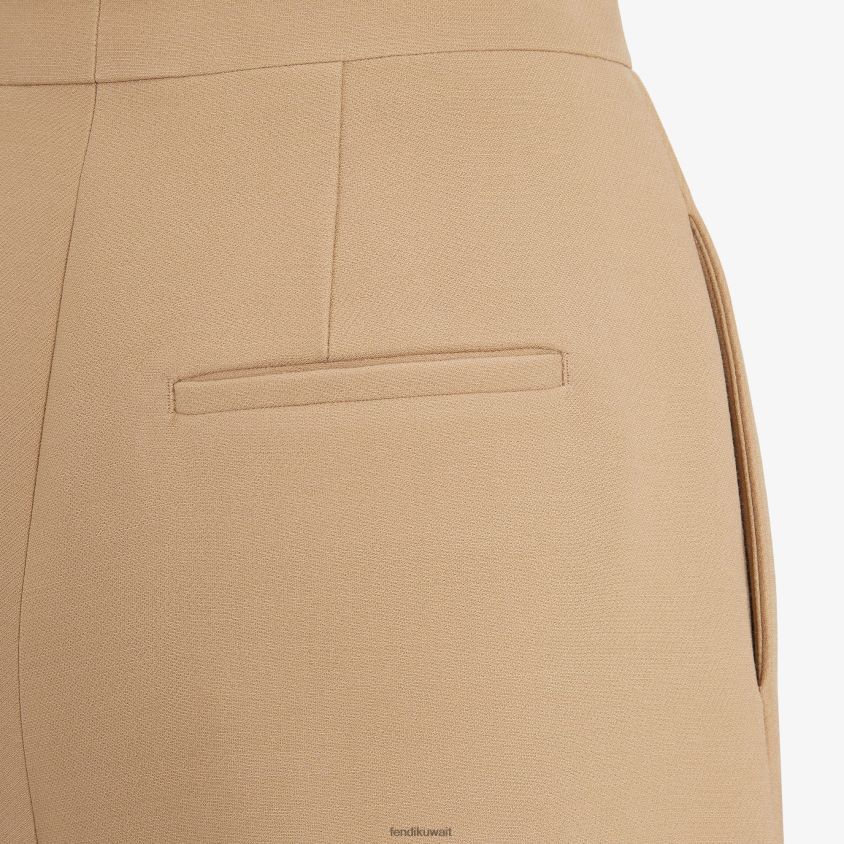 Fendi اللون البيج نحيف السراويل الحرير والصوف RTJZ1252 ثياب
