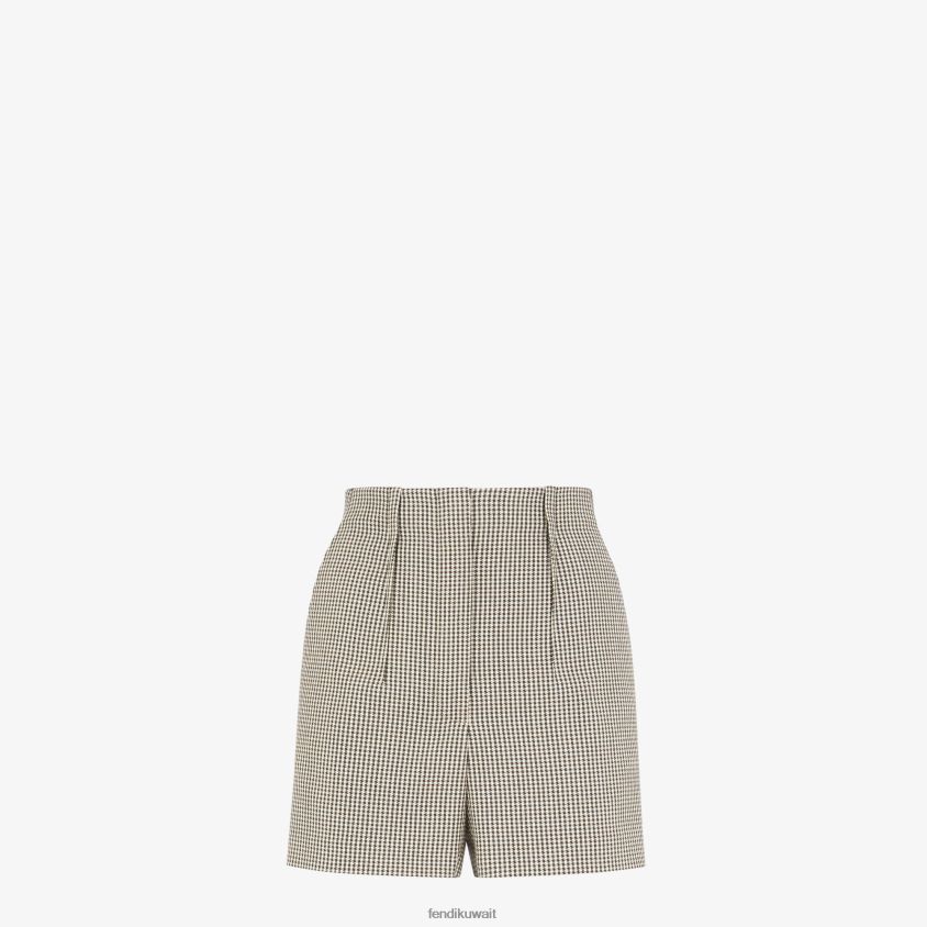 Fendi اللون البيج نحيف شورت من الصوف بنقشة houndstooth RTJZ1225 ثياب