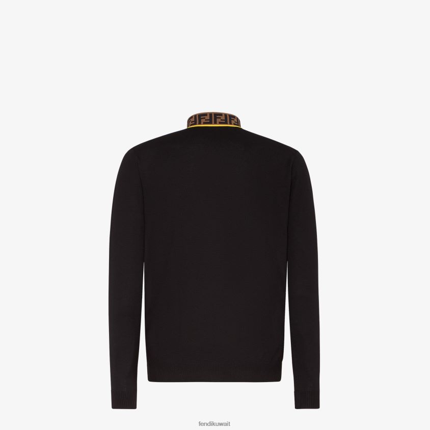 Fendi أسود رجال كنزة صوف RTJZ2080 ثياب