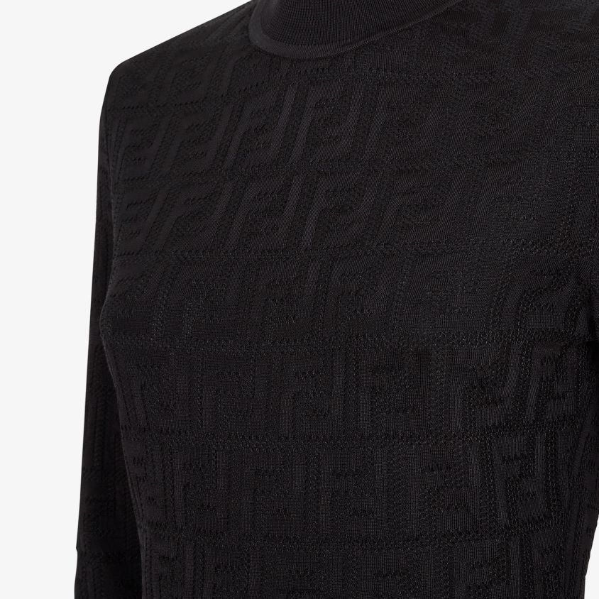 سترة ضيقة بأكمام طويلة. انتهى بحواف مضلعة. مصنوع من مزيج الفيسكوز والقطن البيئي باللون الأسود مع شعار ff على كامل التصميم.