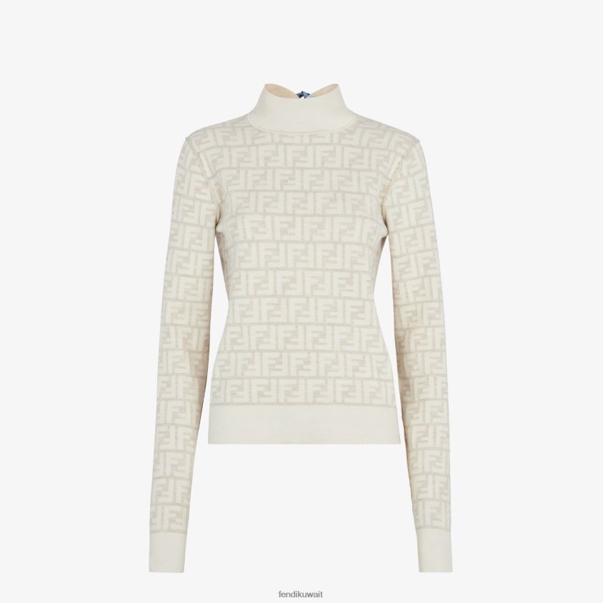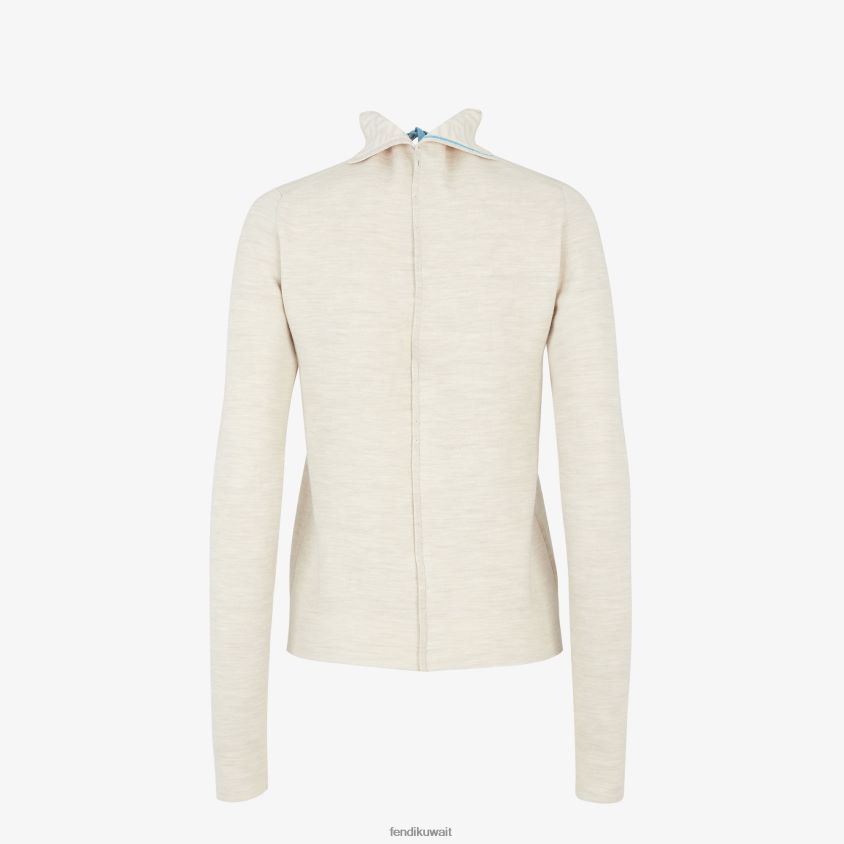 Fendi اللون البيج نحيف كنزة صوف RTJZ997 ثياب