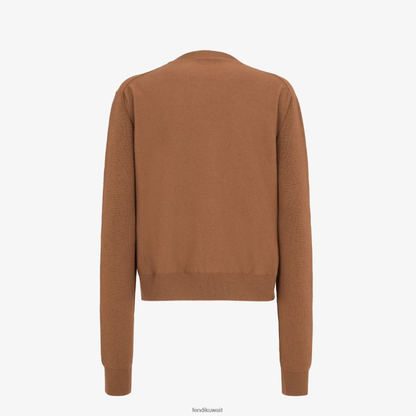 Fendi بني نحيف البلوز الكشمير RTJZ1248 ثياب