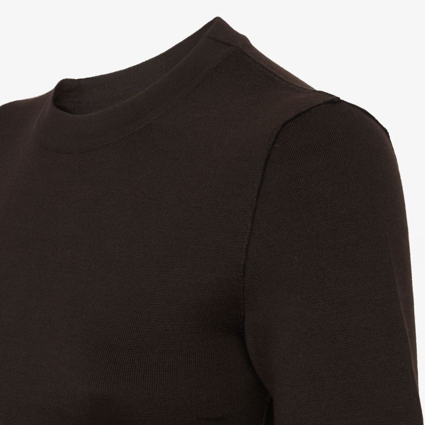 Fendi بني نحيف كنزة صوف RTJZ1155 ثياب