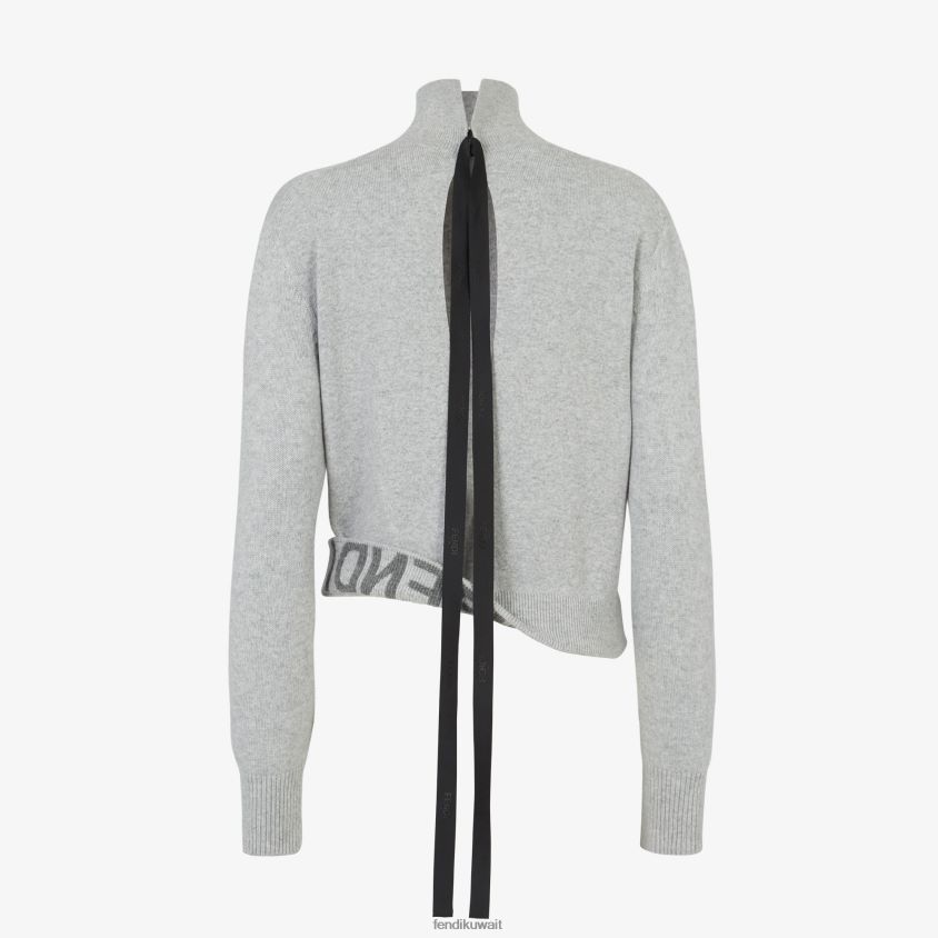Fendi رمادي نحيف سترة الكشمير والصوف RTJZ1118 ثياب