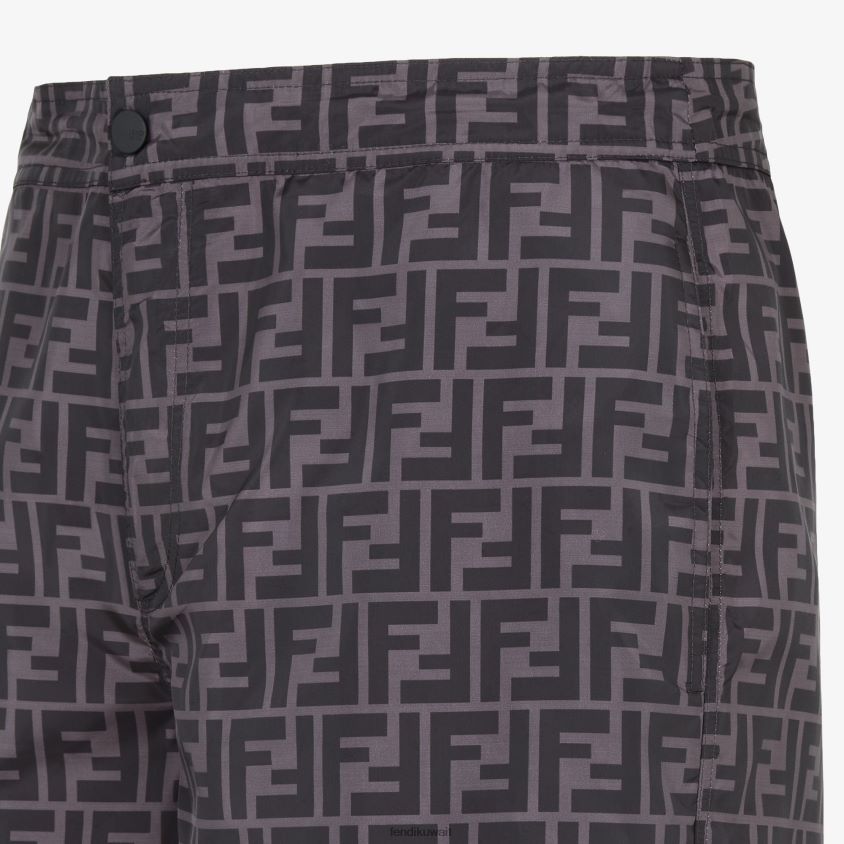 شورت ركوب الأمواج مع جيوب جانبية. إغلاق بسحاب وزر. مصنوع من النايلون مع شعار ff مطبوع بالكامل باللونين الأسود والرمادي.