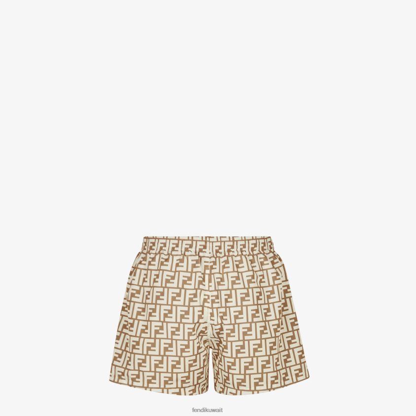 شورت سباحة بحزام خصر مطاطي ورباط. مصنوعة من القماش مع زخارف باللون البيج. مزينة بربطات عنق تحمل العلامة التجارية.