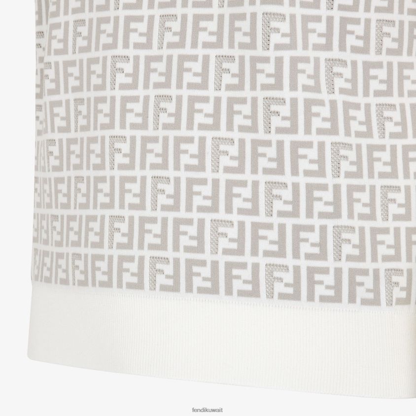 سترة بأكمام قصيرة ورقبة دائرية. حواف مضلعة. مصنوع من خيوط الفيسكوز باللون الأبيض ومطعم بزخرفة ff.