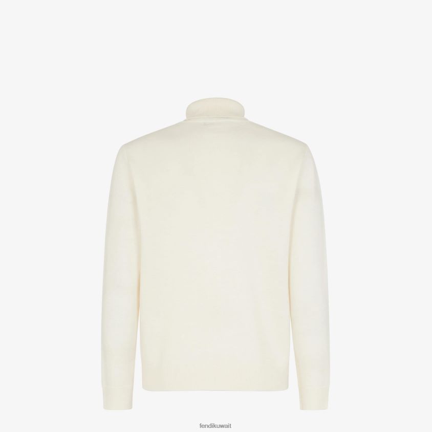 Fendi أبيض رجال الياقة المدورة من الصوف RTJZ2093 ثياب