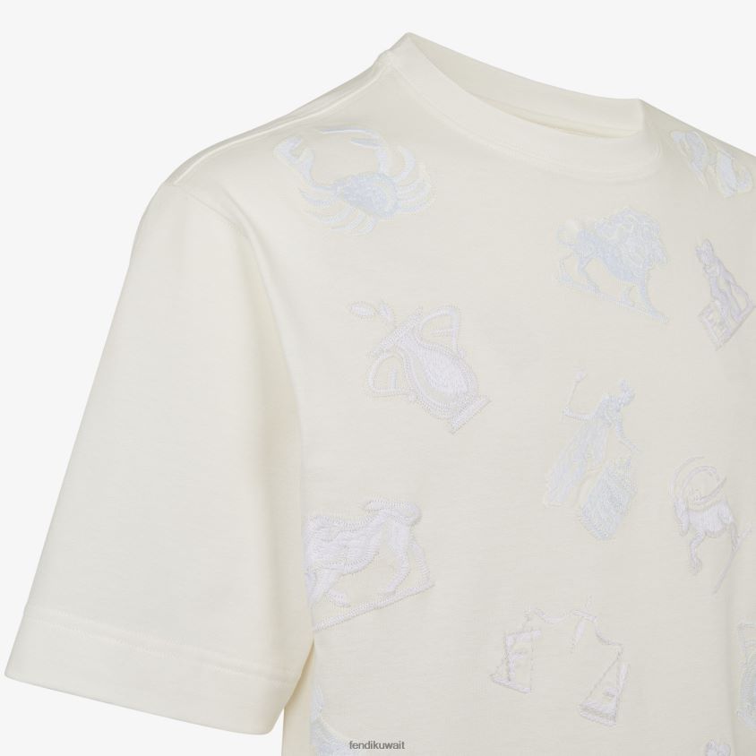 تي شيرت كبير الحجم بأكمام قصيرة ورقبة دائرية. مصنوع من قطن الجيرسيه الأبيض. مزخرف بالكامل بزخارف علم التنجيم من فندي ومطرزة بنفس اللون.