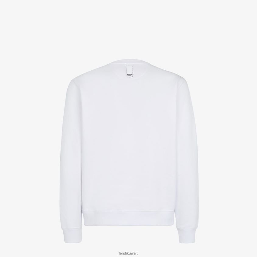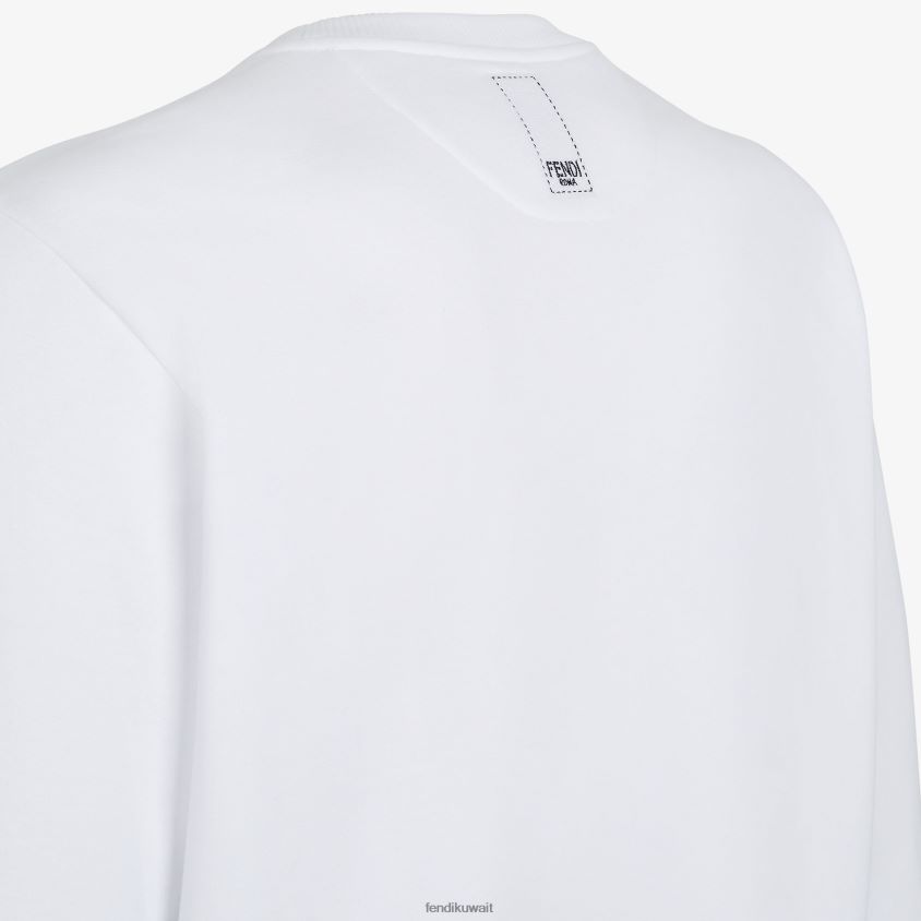 كنزة كبيرة الحجم بياقة دائرية وأكمام طويلة. مصنوع من قطن الجيرسيه الأبيض. مزين بعلامة فندي الجاكار المطرزة على الصدر والظهر.