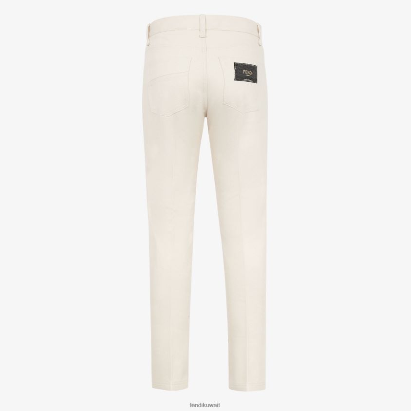 Fendi أبيض رجال سراويل جينز RTJZ2120 ثياب
