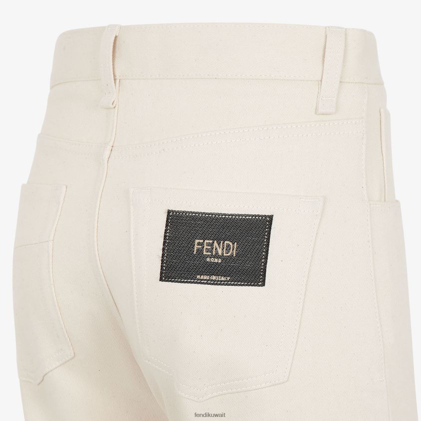 بنطال بقصة عادية وساق مستقيمة. سهام أمامية وجيوب جانبية. إغلاق بسحاب مخفي وزر تك. مصنوع من قطن الدنيم الأبيض. مزين بشعار فندي جاكار على الجيب الخلفي.