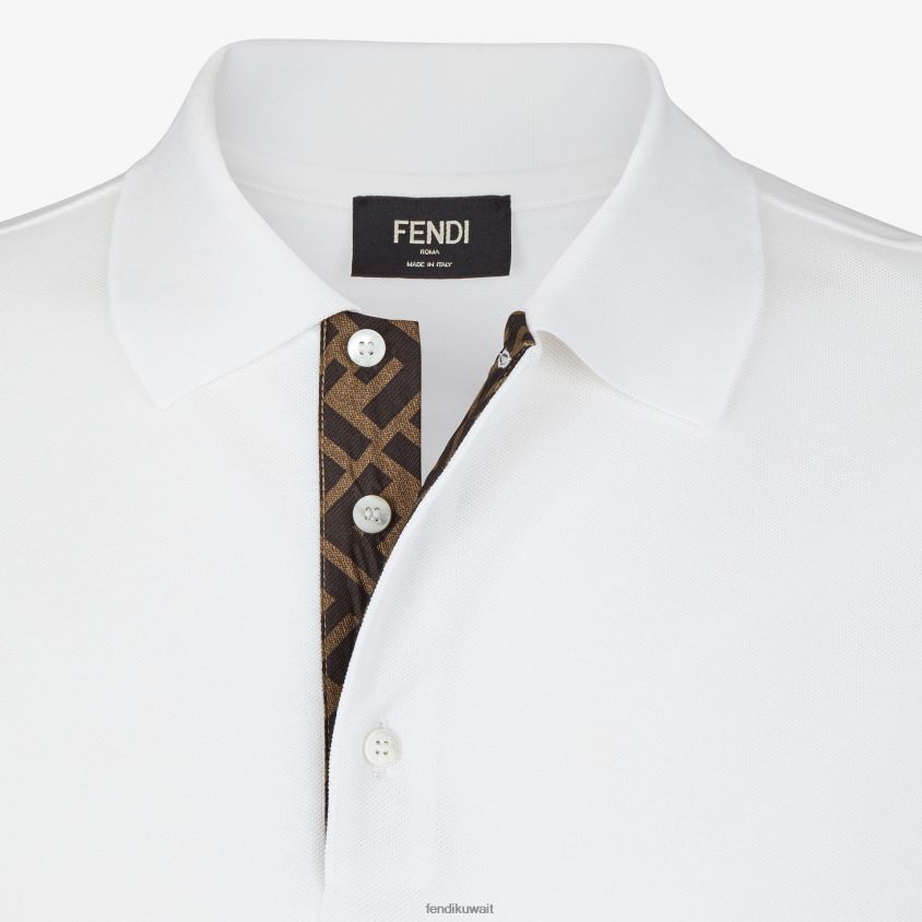 Fendi أبيض رجال قميص بولو بيكيه RTJZ2171 ثياب