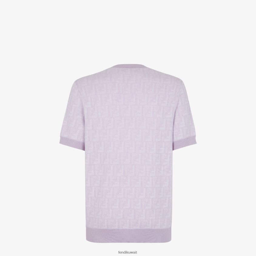 سترة بأكمام قصيرة ورقبة دائرية. حواف مضلعة. مصنوع من خيوط الصوف مع نقش ظل فندي إنتارسيا باللون الأرجواني والأبيض.