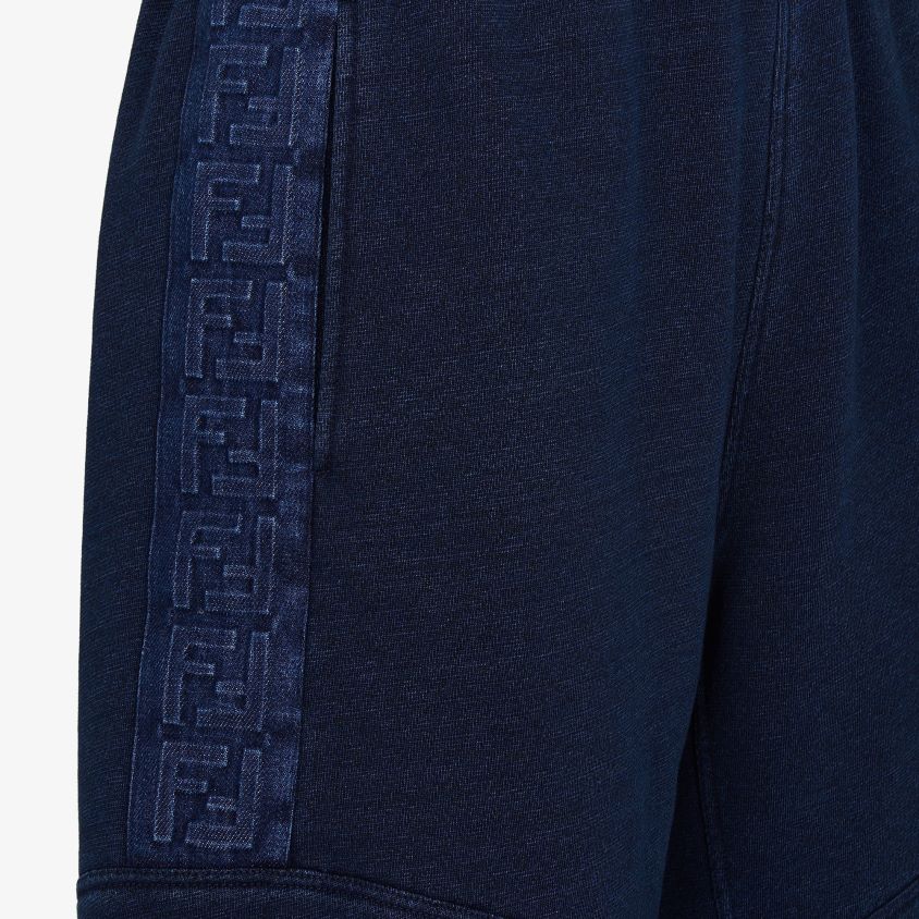 بنطال برمودا بخصر مطاطي وجيوب جانبية. مصنوع من جيرسي الدنيم الأزرق. مزين بشرائط من الدنيم المغسول على الجوانب، مع شعار ff بارز بلون مطابق.