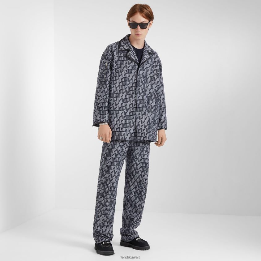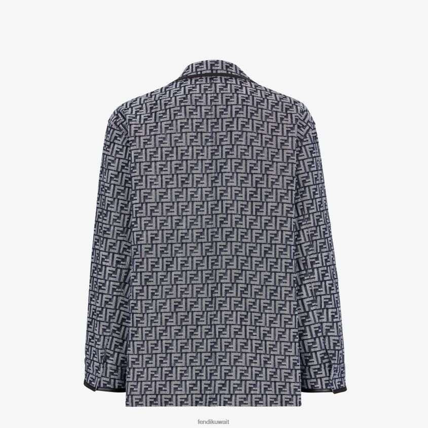 سترة كبيرة الحجم بصدر واحد. جيوب رقعة على الصدر وأكمام طويلة. إغلاق بأزرار كبس مخفية. مصنوع من قماش الدنيم الأزرق مع زخارف جاكار ff على كامل التصميم. مزين بزخرفة جلدية على الياقة والأصفاد. غير مُبطن.