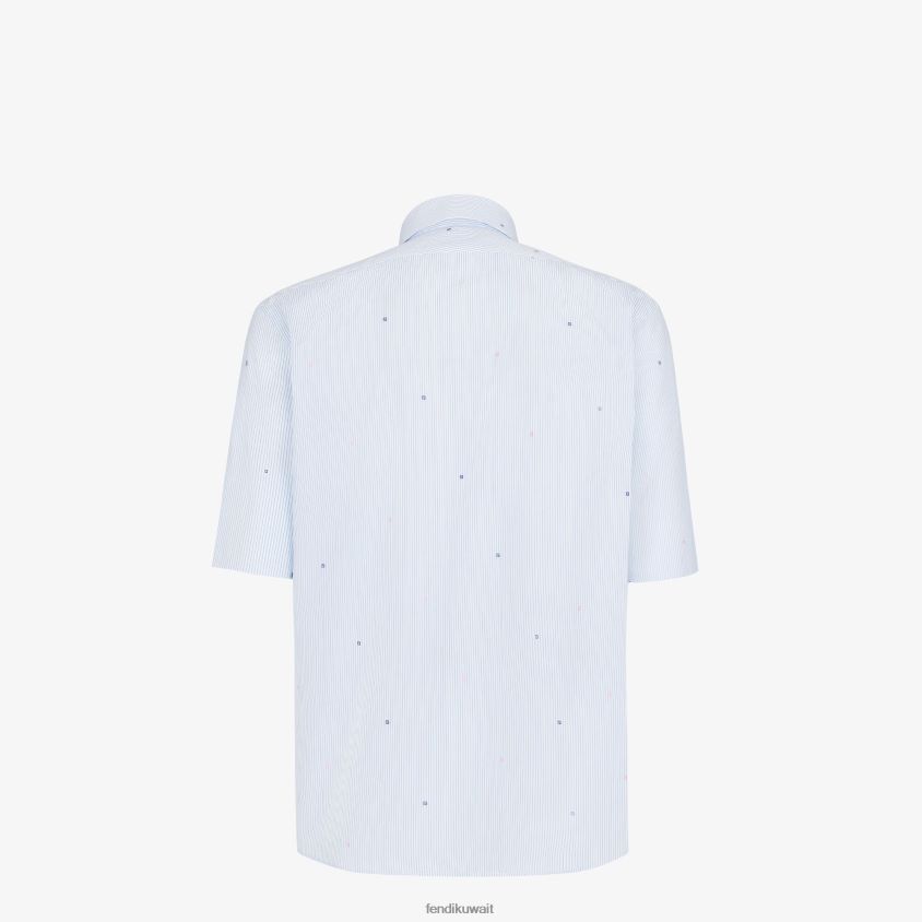 Fendi أزرق فاتح رجال قميص قطني RTJZ2070 ثياب