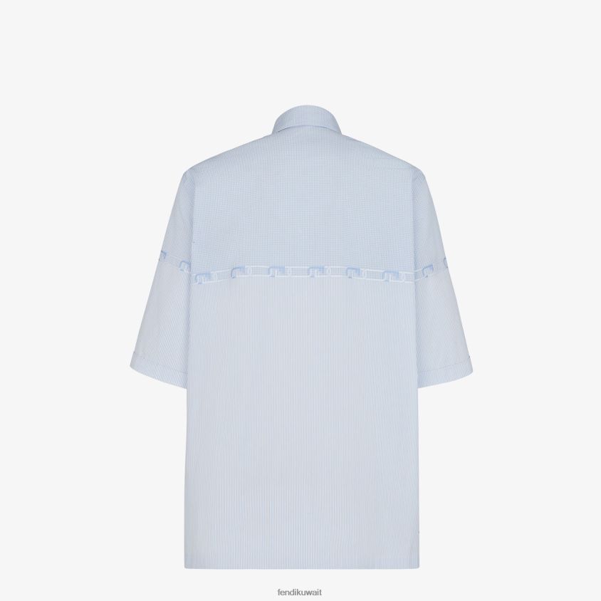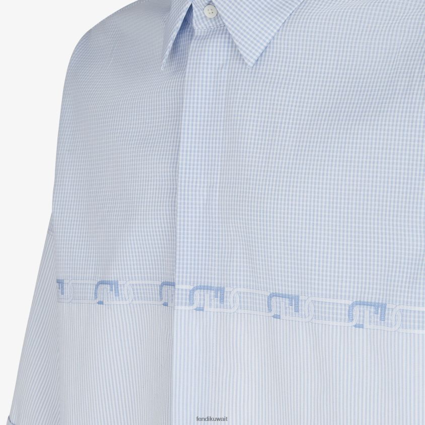 Fendi أزرق فاتح رجال قميص قطني RTJZ2184 ثياب