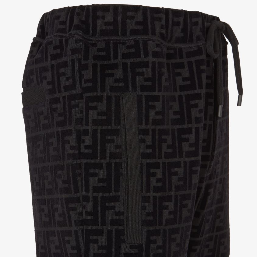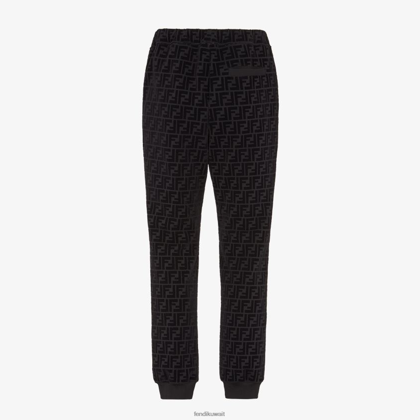 بنطال للركض بإضافات مطاطية على الخصر وجيوب مبطنة. مصنوع من بيكيه القطن الأسود. مزين بزخارف ff متدفقة ومطبوعة في كل مكان.