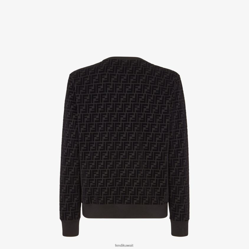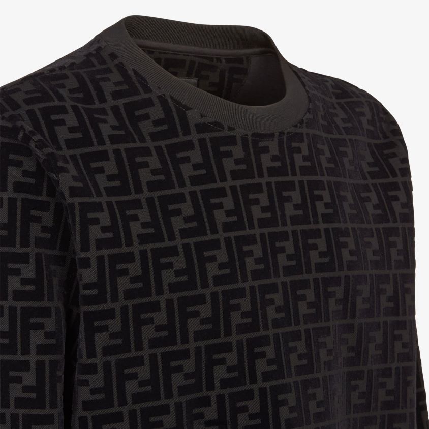 سويت شيرت ذو قصة عادية وأكمام طويلة ورقبة دائرية. طوق مضلع والأصفاد والحواف. مصنوعة من بيكيه القطن الأسود. مزين بزخارف ff متدفقة ومطبوعة في كل مكان.