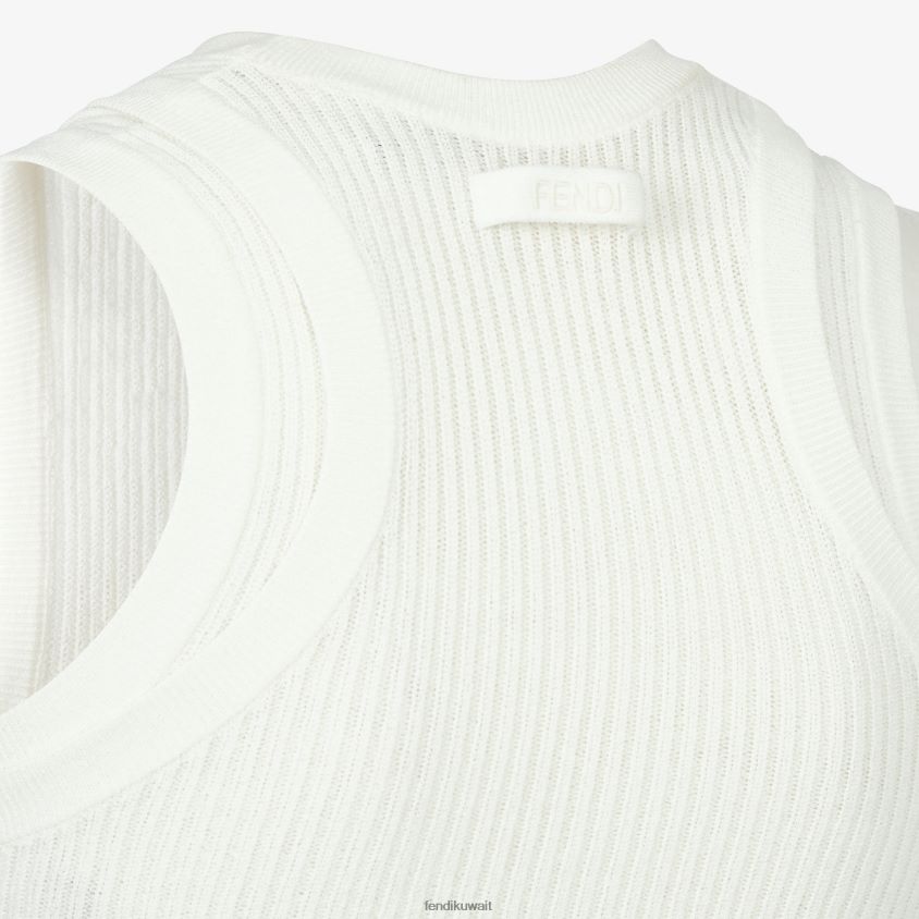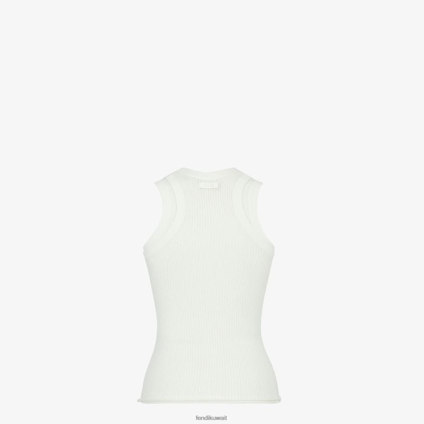 Fendi أبيض نحيف أعلى فسكوزي RTJZ1146 ثياب