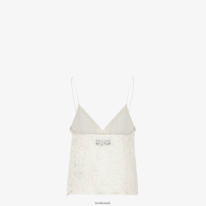 Fendi أبيض نحيف الدانتيل أعلى RTJZ941 ثياب