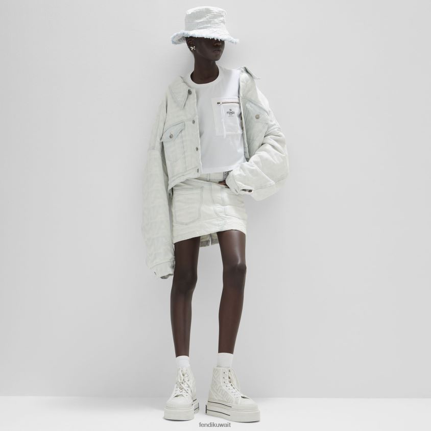 تيشيرت قصير بياقة دائرية وأكمام قصيرة. مصنوع من الجيرسيه الأبيض. مزين بجيب رقعة بسحاب على الصدر، وخياطة سيليريا مرتفعة وشعار فندي روما متباين.