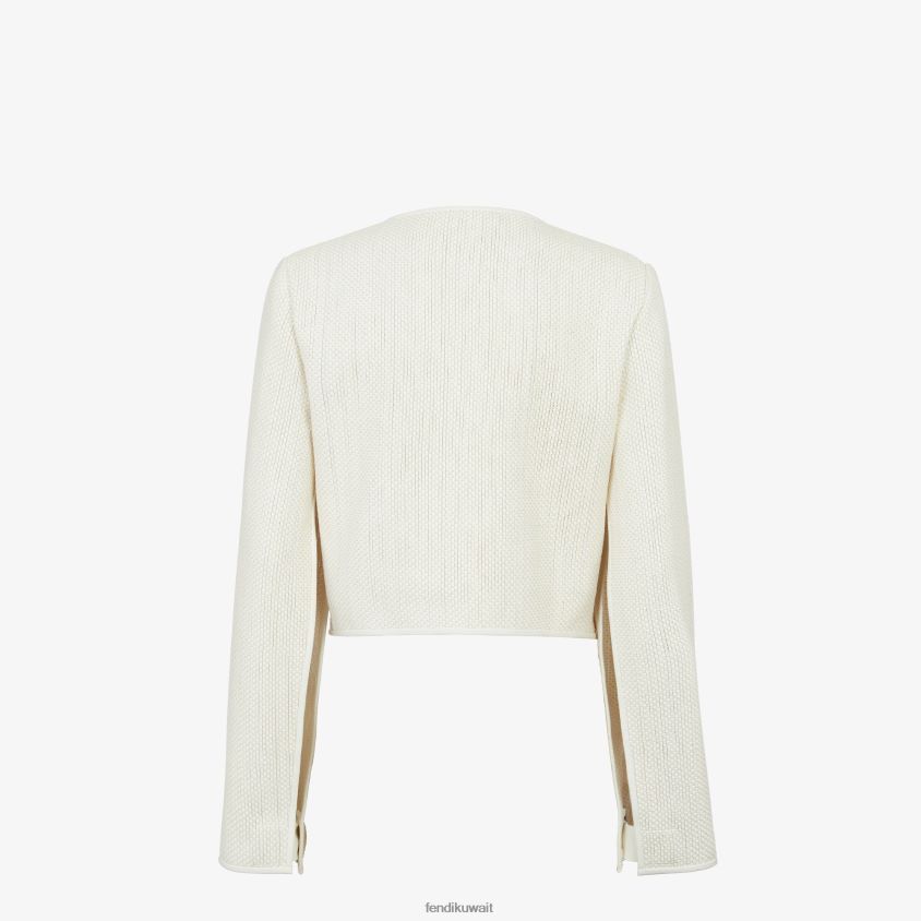 Fendi أبيض نحيف سترة جلدية متشابكة RTJZ1138 ثياب