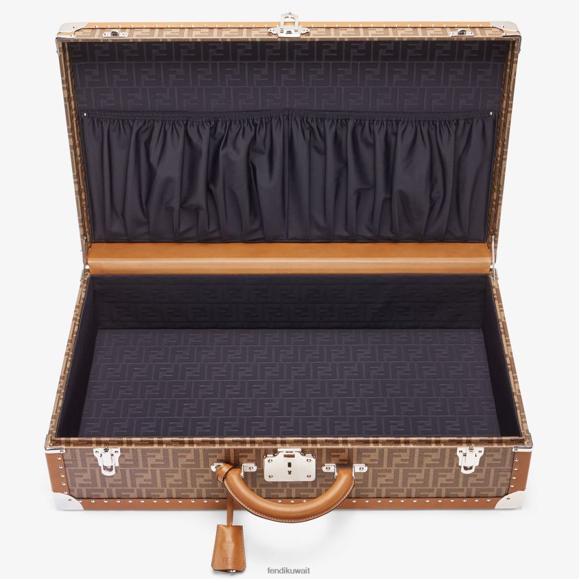 نسخة كبيرة من صندوق السفر المستطيل مع قفل مزدوج وقفل مزدوج. مقبض واحد مع علامة حلقة مفاتيح وحزام كتف قابل للتعديل والفصل. حجرة داخلية كبيرة مع جيبين للصحف. الهيكل الخشبي مغطى بقماش بني مصقول بزخارف جاكار ff. تم تشطيبه بحواف جلدية وتفاصيل معدنية ومسامير. واصطف داخل ليكرا وما يليها. حزام كتف من القماش. أدوات معدنية مطلية بالبلاديوم.