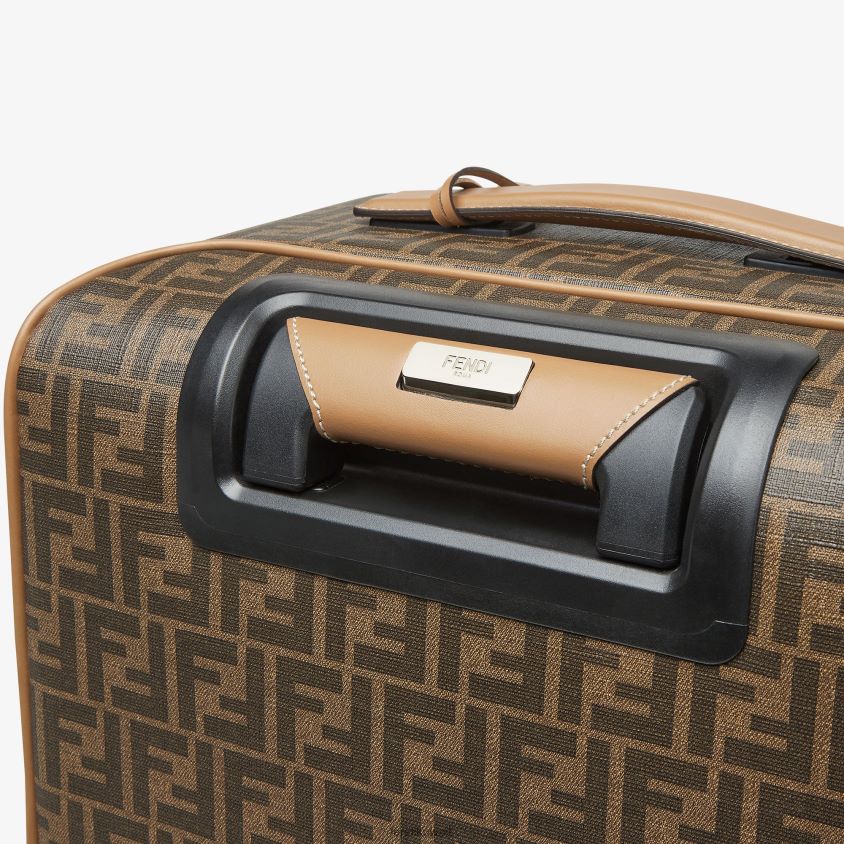 حقيبة سفر بأربع عجلات مصنوعة من القماش مع شعار ff مع سحاب منزلق مزدوج.