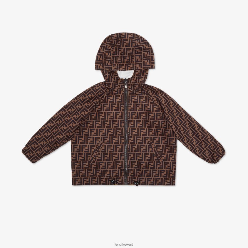 سترة واقية للصغار ذات وجهين مصنوعة من النايلون. جانب واحد باللون الأبيض الصلب مع أشرطة شعار ff، والآخر عليه طبعة ff بلون التبغ بالكامل.