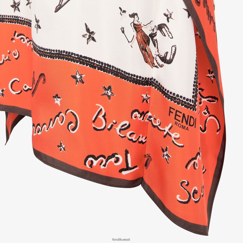 Fendi البرتقالي نحيف فستان حرير RTJZ1020 ثياب