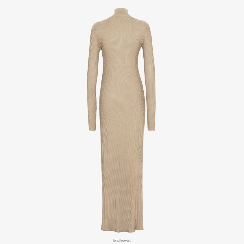Fendi اللون البيج نحيف فستان من الحرير والفسكوز RTJZ953 ثياب