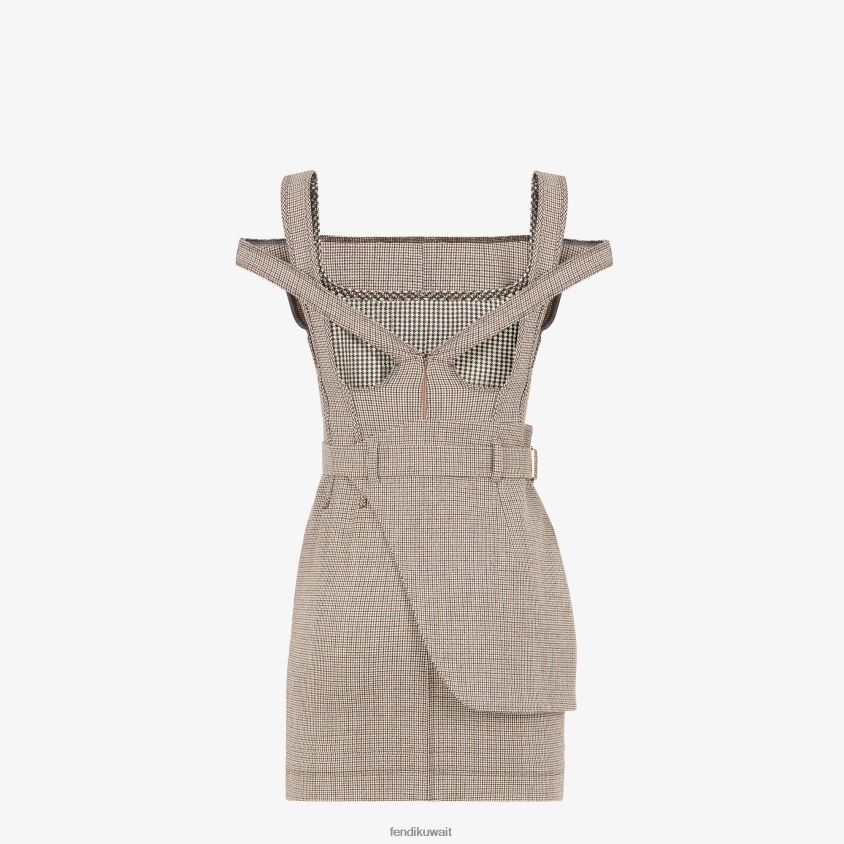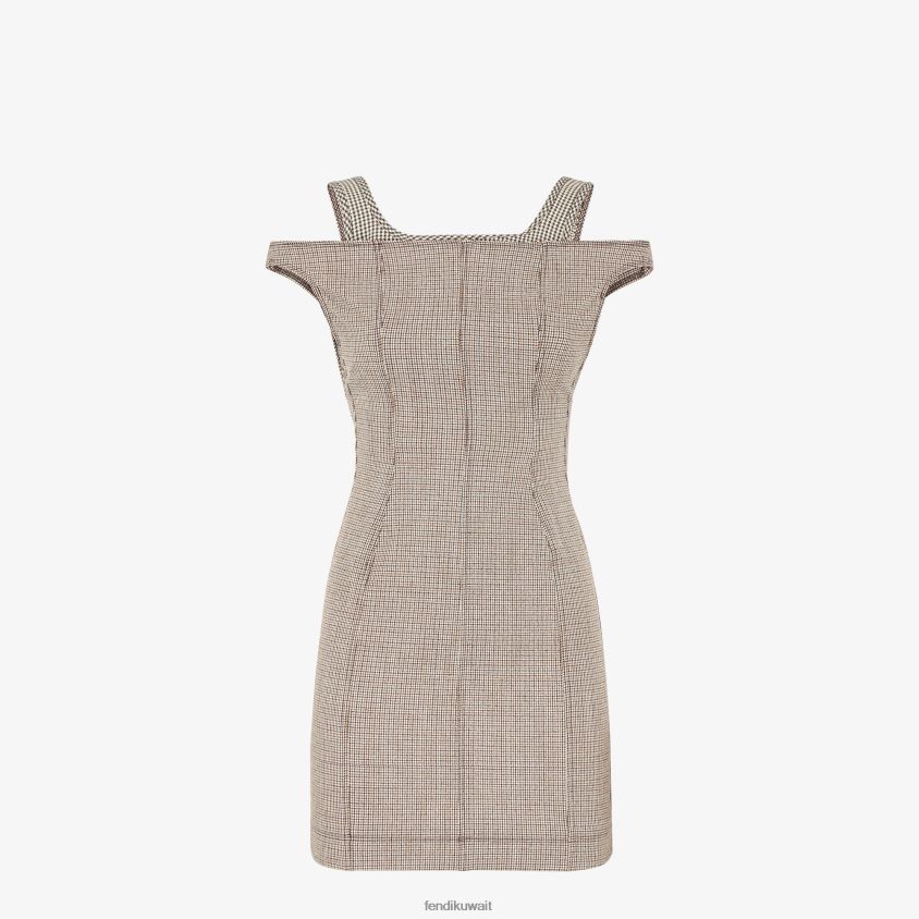 Fendi اللون البيج نحيف فستان من الصوف بنقش مربعات RTJZ1223 ثياب