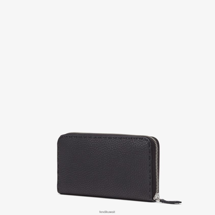 محفظة بسحاب. منظمة في ثلاث حجرات مقواة مع ثمانية فتحات للبطاقات وجيب بسحاب. مصنوع من جلد Cuoio Romano باللون الأسود. مزينة بحروف فندي روما وحواف منتهية بخياطة سيليريا المخيطة يدويًا. أدوات معدنية مطلية بالبلاديوم.