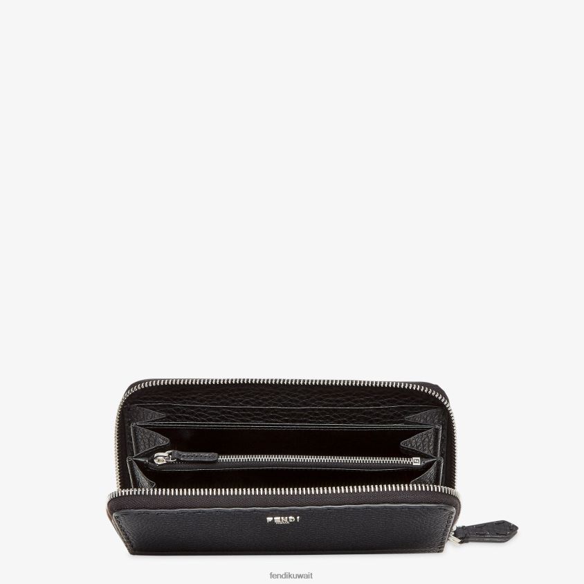 Fendi أسود رجال محفظة جلدية بسحاب حول Selleria RTJZ2647 مُكَمِّلات