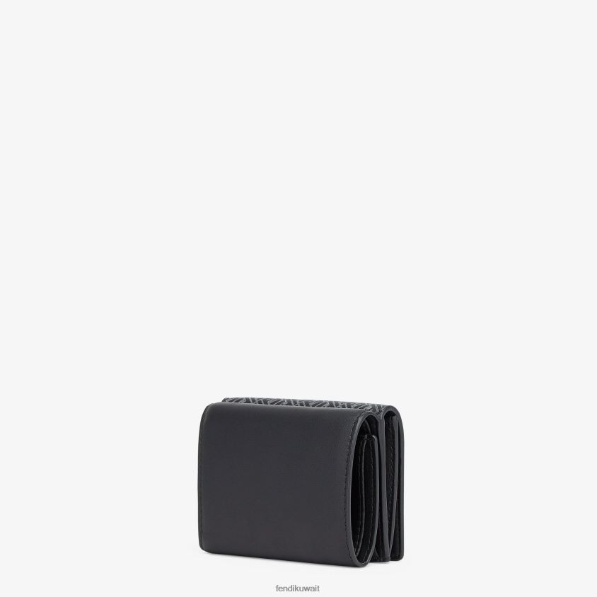 Fendi أسود رجال محفظة جلدية ثلاثية الطي RTJZ2658 مُكَمِّلات