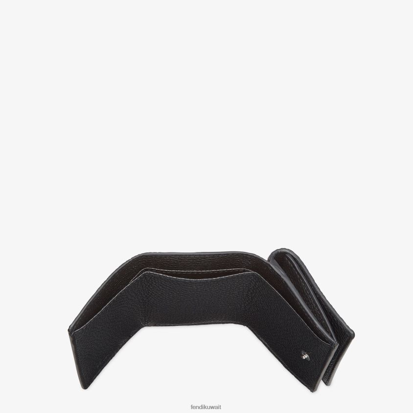 Fendi أسود رجال محفظة جلدية ثلاثية الطي RTJZ2666 مُكَمِّلات