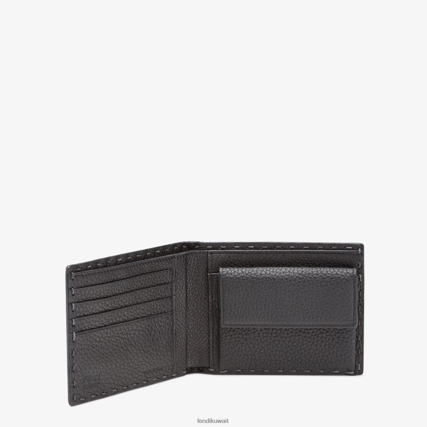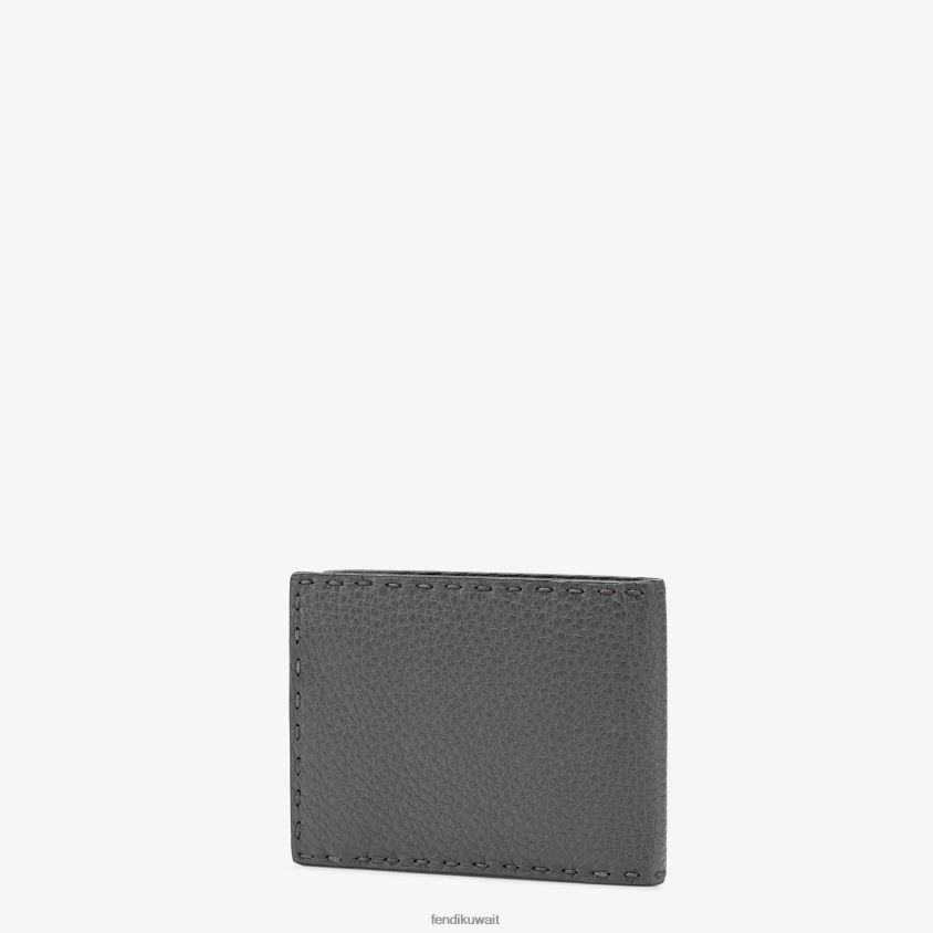 Fendi رمادي رجال محفظة ثنائية الطي من الجلد RTJZ2680 مُكَمِّلات