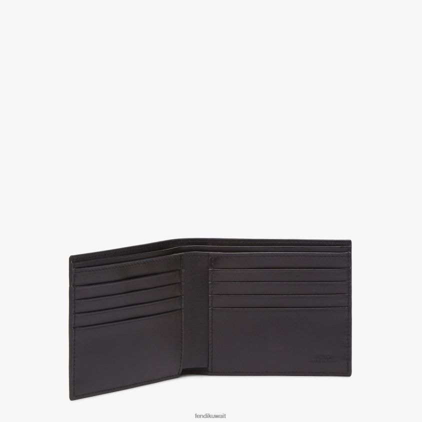 محفظة بها ثمانية فتحات داخلية للبطاقات وحجرتين للفواتير. مصنوعة من قماش رمادي مزخرف بزخارف ff. مزين ببطانة من الجلد الأسود وتفاصيل مطعمة باللون الأصفر. بطانة جلدية سوداء.