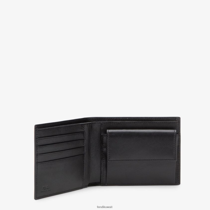 تتميز المحفظة ثنائية الطي بأربع فتحات للبطاقات، وجيب للفواتير، وحجرة عملية للعملات المعدنية تُغلق بكبسة. مصنوعة من قماش رمادي مزخرف بزخارف ff. مزين ببطانة من الجلد الأسود وتفاصيل مطعمة باللون الأصفر. بطانة جلدية سوداء.