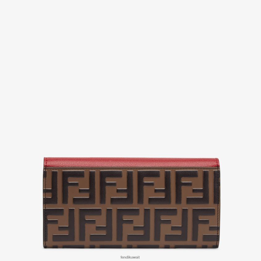 Fendi أحمر نحيف كونتيننتال مع محفظة جلدية بسلسلة RTJZ1597 مُكَمِّلات