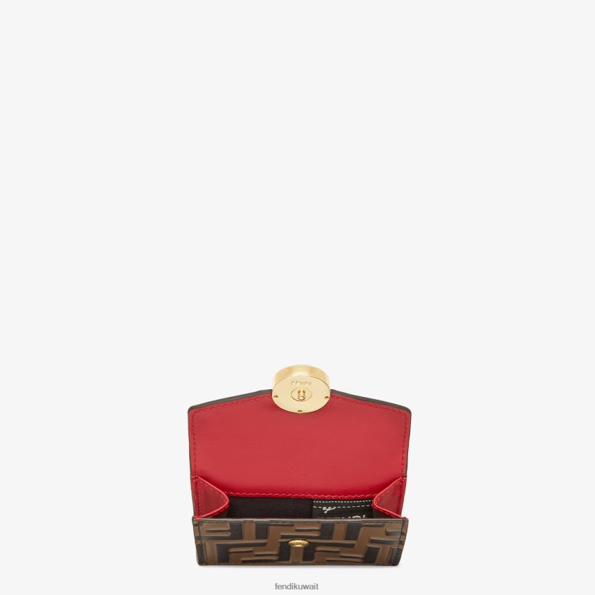 Fendi أحمر نحيف محفظة جلدية ثلاثية الطي RTJZ1596 مُكَمِّلات