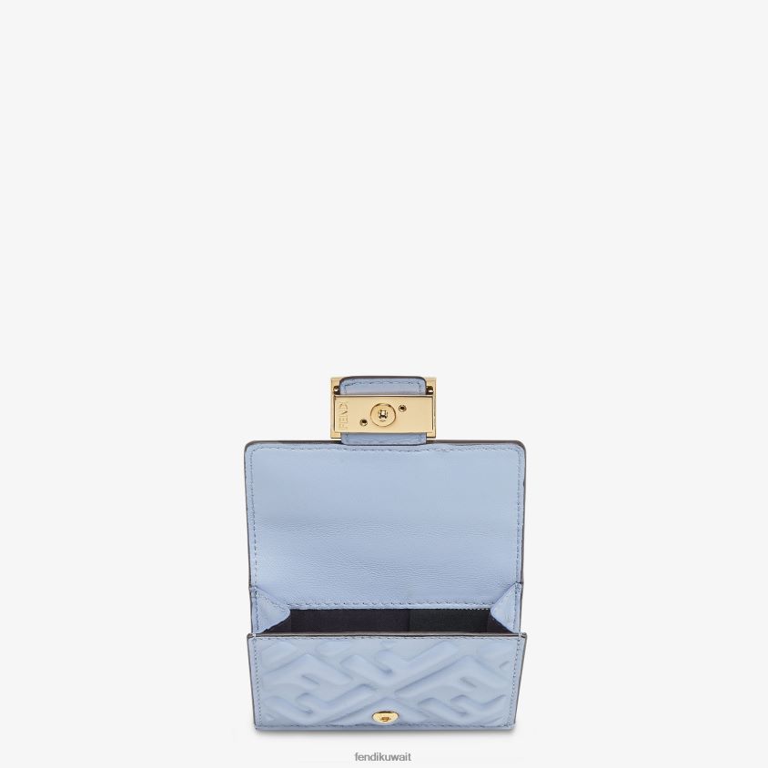 Fendi أزرق فاتح نحيف محفظة باجيت مايكرو ثلاثية الطي من جلد نابا RTJZ1423 مُكَمِّلات